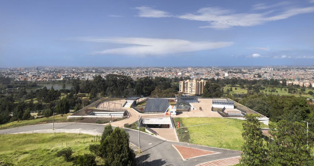 El Centro Cultural y Deportivo Las Cometas se concibe como una pieza articuladora entre el parque y la ciudad, integrándose de manera precisa a la topografía existente. El proyecto adapta sus niveles al terreno y transforma sutilmente la montaña para alojar el programa deportivo y cultural, extendiendo el espacio público a través de cubiertas transitables que amplían las áreas utilizables y potencian las visuales sobre la ciudad.