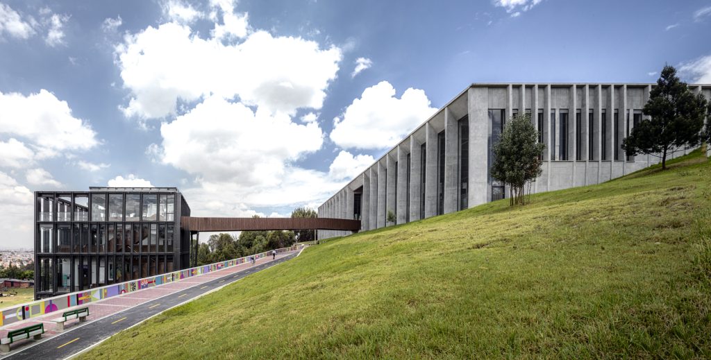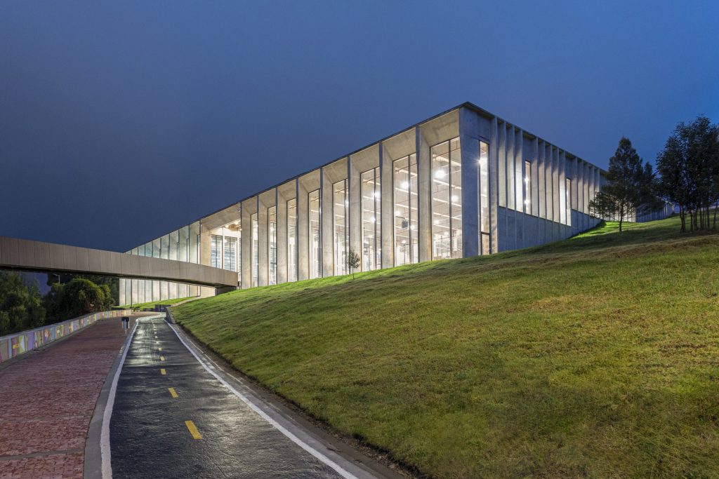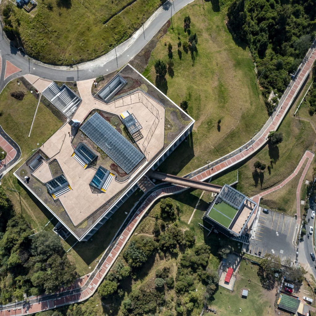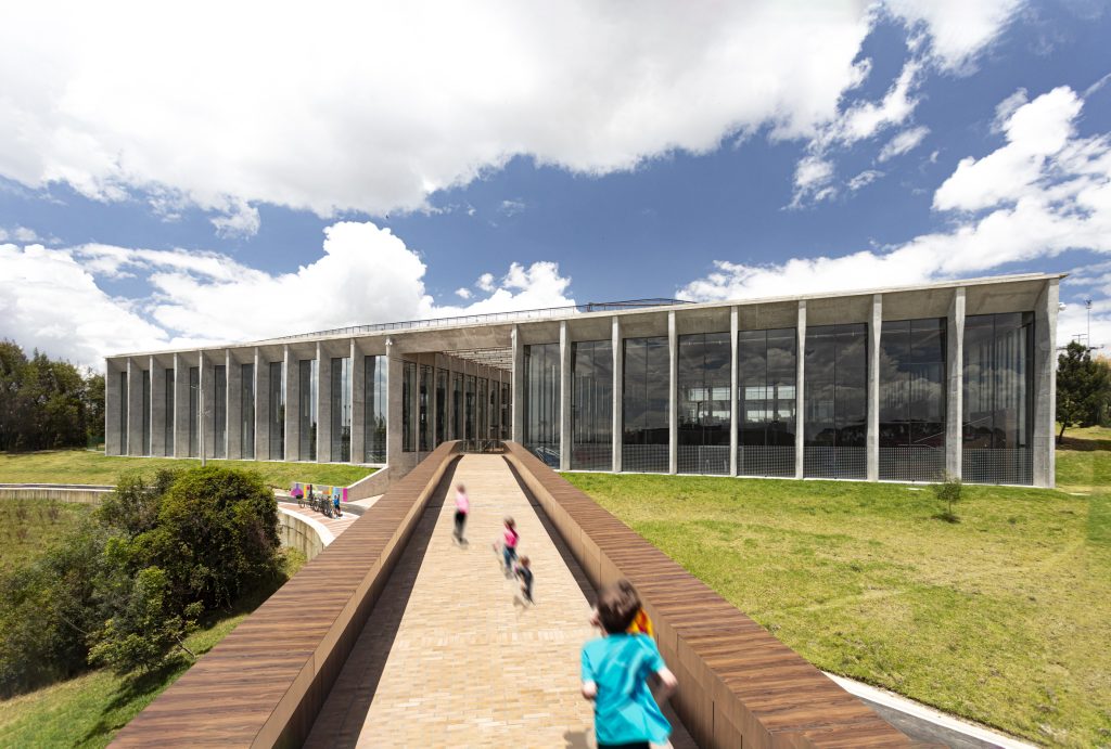 El conjunto se plantea como una secuencia de recorridos y miradores que enmarcan las vistas hacia la ciudad y las montañas. La estructura modular define la expresión arquitectónica y actúa como control solar, favoreciendo iluminación y ventilación natural. Las cubiertas verdes, los patios y la ventilación cruzada permanente refuerzan el desempeño ambiental, configurando una arquitectura que integra funcionalidad, sostenibilidad y relación activa con el entorno y la comunidad.